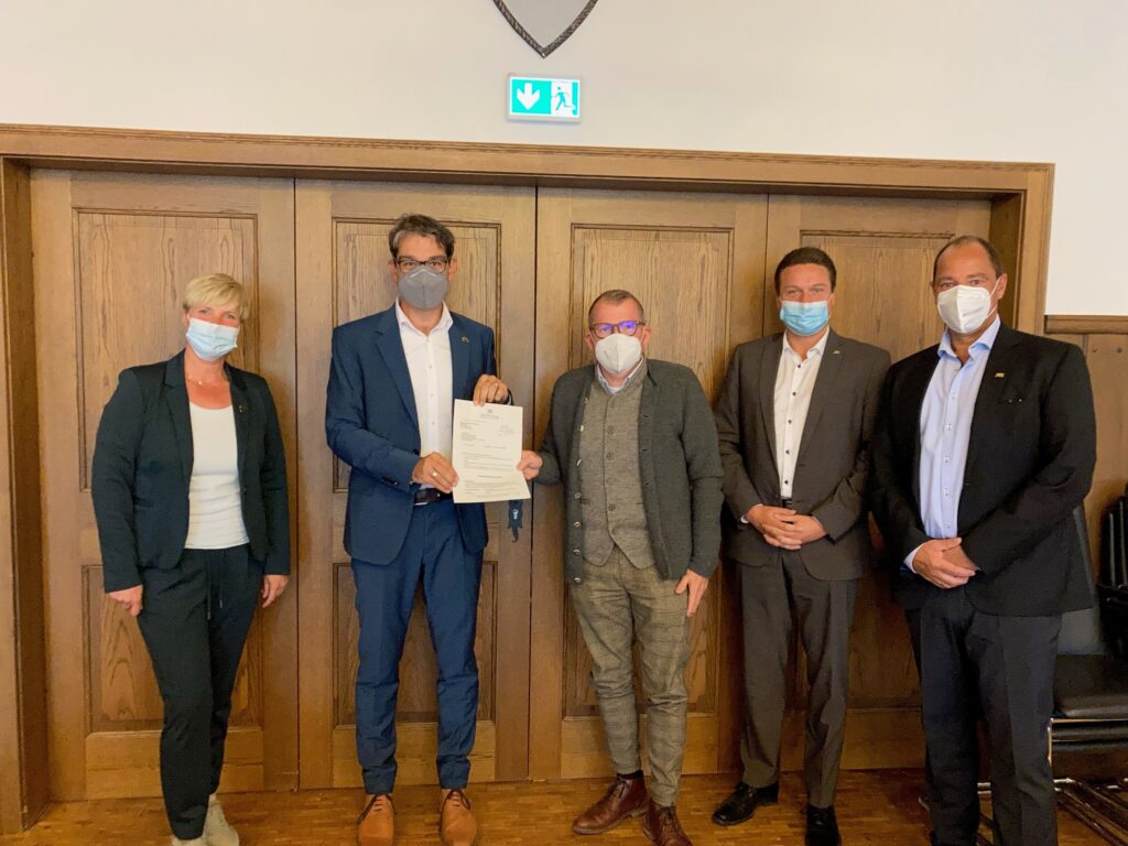 1,7 Millionen Euro für Regenüberlaufbecken Die Erneuerung der Technik an den Regenüberlaufbecken im Einzugsgebiet der Kläranlagen Münsingen, Böttental und Gundelfingen wird mit 1,7 Millionen Euro gefördert. Bürgermeister Mike Münzing erhielt heute den Förderbescheid des Landes Baden-Württemberg.