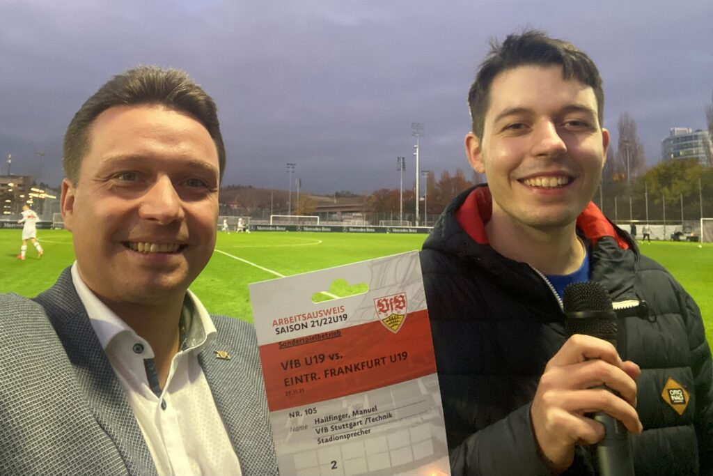3:0 der U19 des VfB gegen Eintracht Frankfurt Zum Abschluss des Tages durfte ich den Stadionsprecher Timo Piontek beim 3:0 der U19 des VfB gegen Eintracht Frankfurt unterstützen.