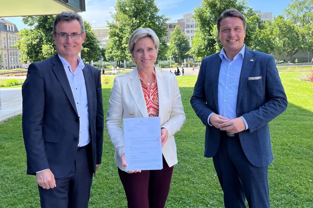 Förderbescheid über 200.000 € Das regionale KI-Labor „KI-Checker Neckar-Alb“ unterstützt kleine und mittelständische Unternehmen der Region Neckar-Alb beim Einstieg in den Bereich Künstliche Intelligenz. Wirtschaftsministerin Dr. Nicole Hoffmeister-Kraut überreichte der IHK Reutlingen dafür in Stuttgart einen Förderbescheid über 200.000 €.