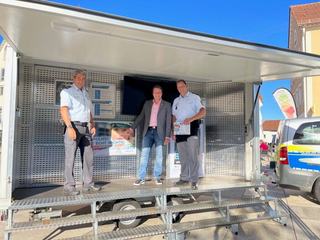 Sommertour durch die Landkreise Esslingen, Reutlingen, Tübingen und Zollernalb Die Einstellungsberater des Polizeipräsidiums Reutlingen sind auf ihrer Sommertour in den Landkreisen Esslingen, Reutlingen, Tübingen und im Zollernalbkreis unterwegs. Heute habe ich sie in Hechingen besucht.