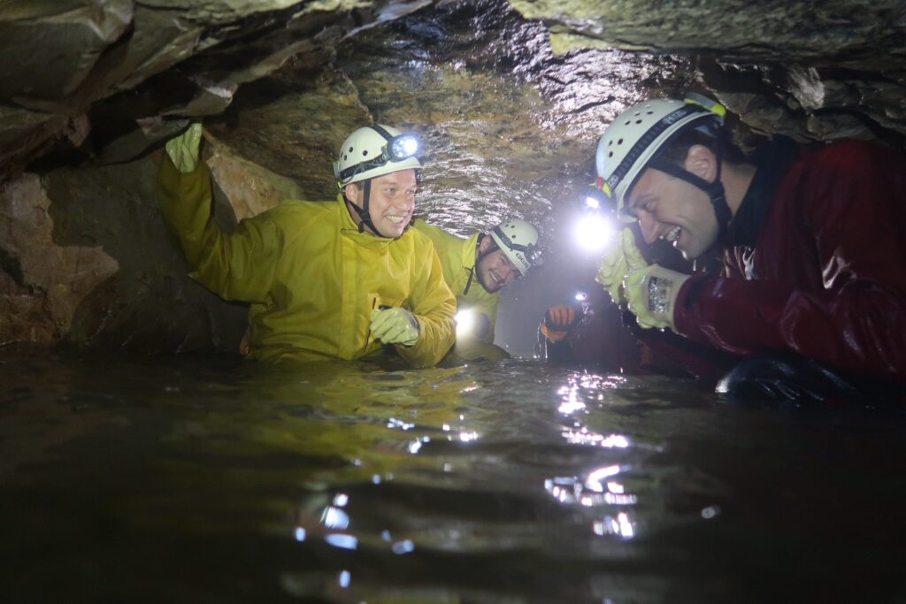 Begehung mit der Höhlenrettung Baden-Württemberg e.V. In der wasserführenden Falkensteiner Höhle haben wir uns über das Einsatzspektrum und die dafür notwendige Ausrüstung der Höhlenrettung Baden-Württemberg e.V. informiert.