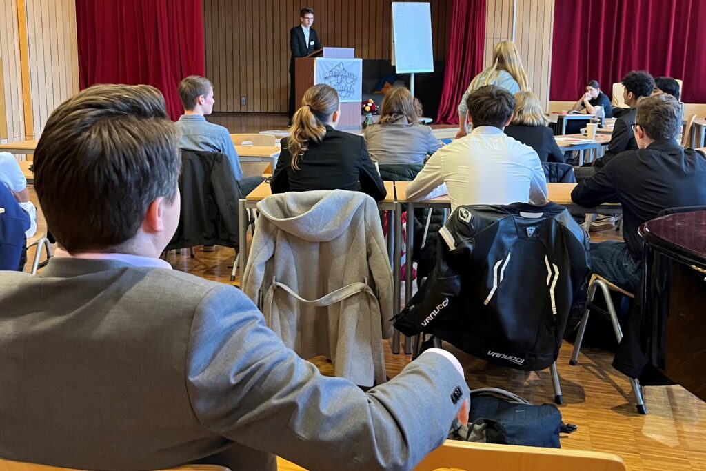 United States of Bonhoeffer Schule als Staat. Nach einem kurzen Austausch mit Kerem Tas, dem Präsidenten der United States of Bonhoeffer, durfte ich als Gast an der Parlamentssitzung teilnehmen. Eine Woche lang hat sich das Dietrich-Bonhoeffer-Gymnasium in Metzingen in einen Staat mit eigener Verfassung, eigener Regierung, eigener Währung und eigenem Wirtschaftskreislauf verwandelt.